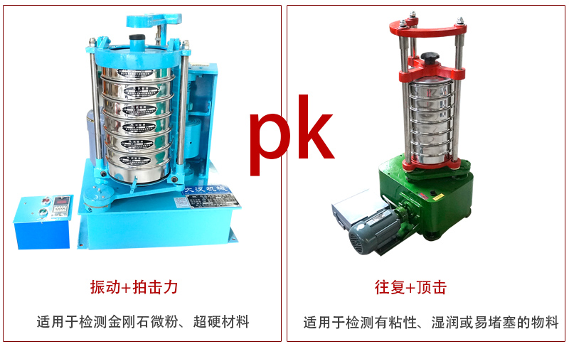 拍击筛(拍击式标准振筛机)分多种特性的产品。适用于普通磨料粒度组成检查、超硬材料生产分级及料度组成检查例如:研磨粉,硅粉,草碳颗粒,氢氧化铝,矿,煤,磨料,石英砂,沙,活性炭,钨粉,聚丙烯,釉料,土壤,金刚石等物料。
